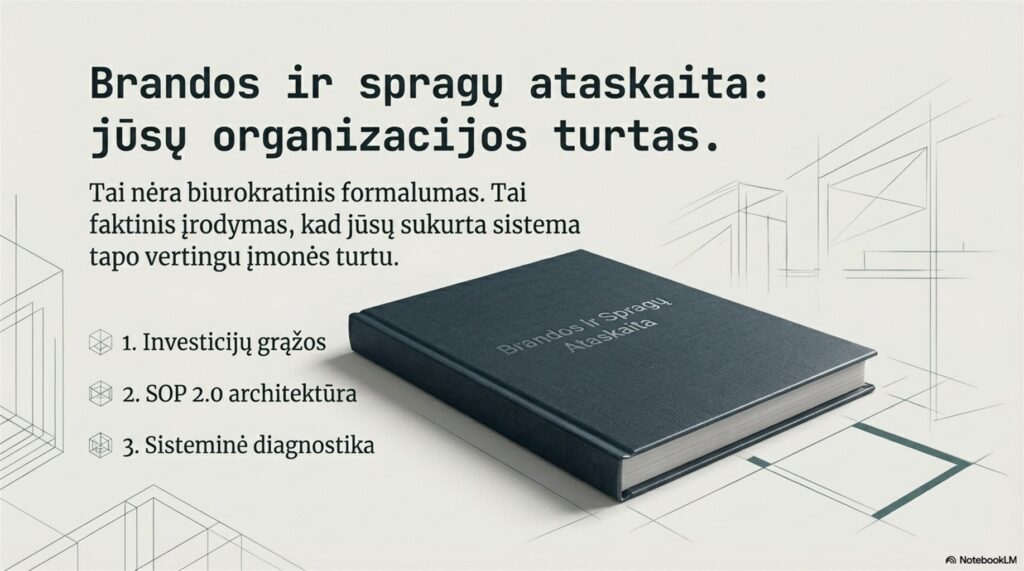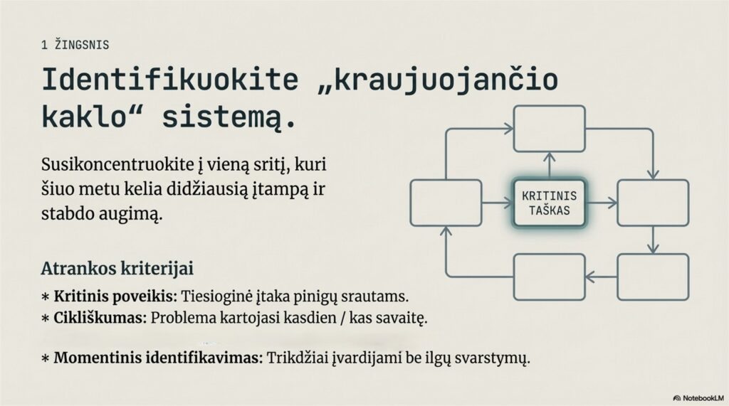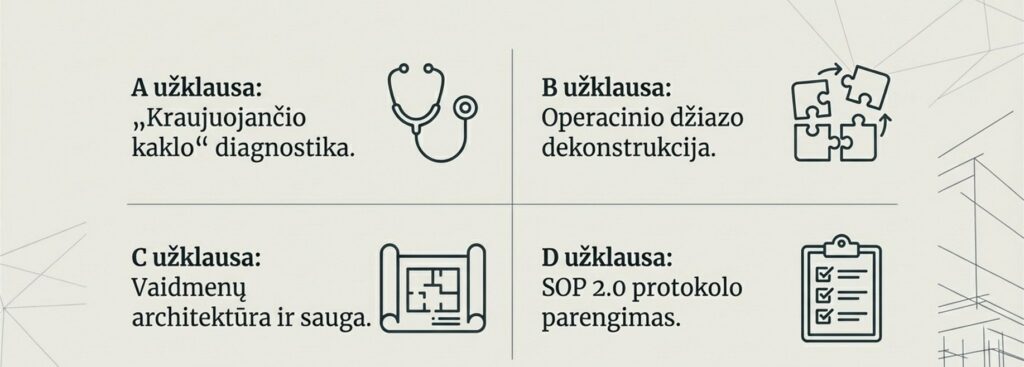 Šis sąrašas nėra tik pastabos – tai jūsų būsimų SOP 2.0 modulių pamatas ir tiesioginis kelias į operacinio džiazo eliminavimą.